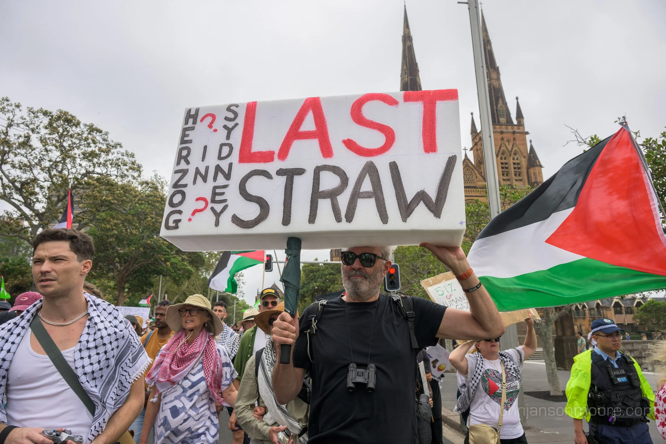 Sunday’s Free Palestine rally drew thousands out to Hyde Park, on Gadigal Land, to protest against the imminent visit of Israel’s President, Isaac Herzog, after having been invited by Australian Prime Minister Anthony Albanese.