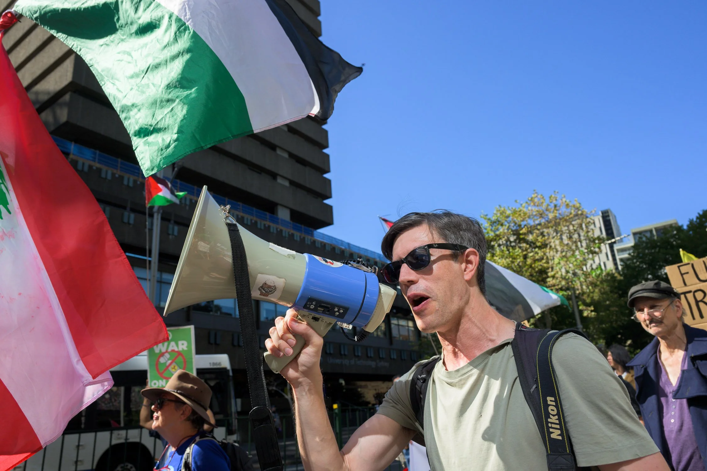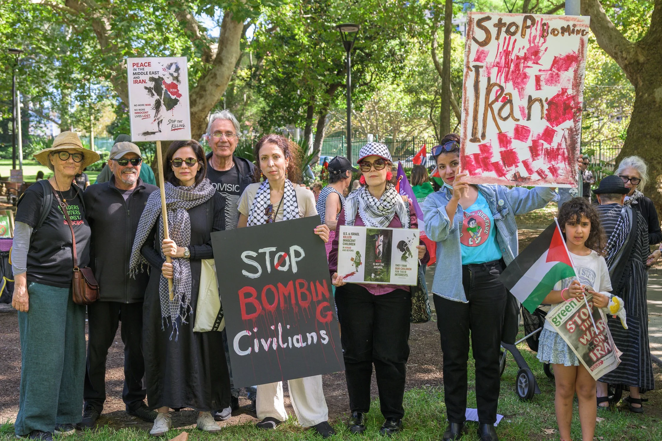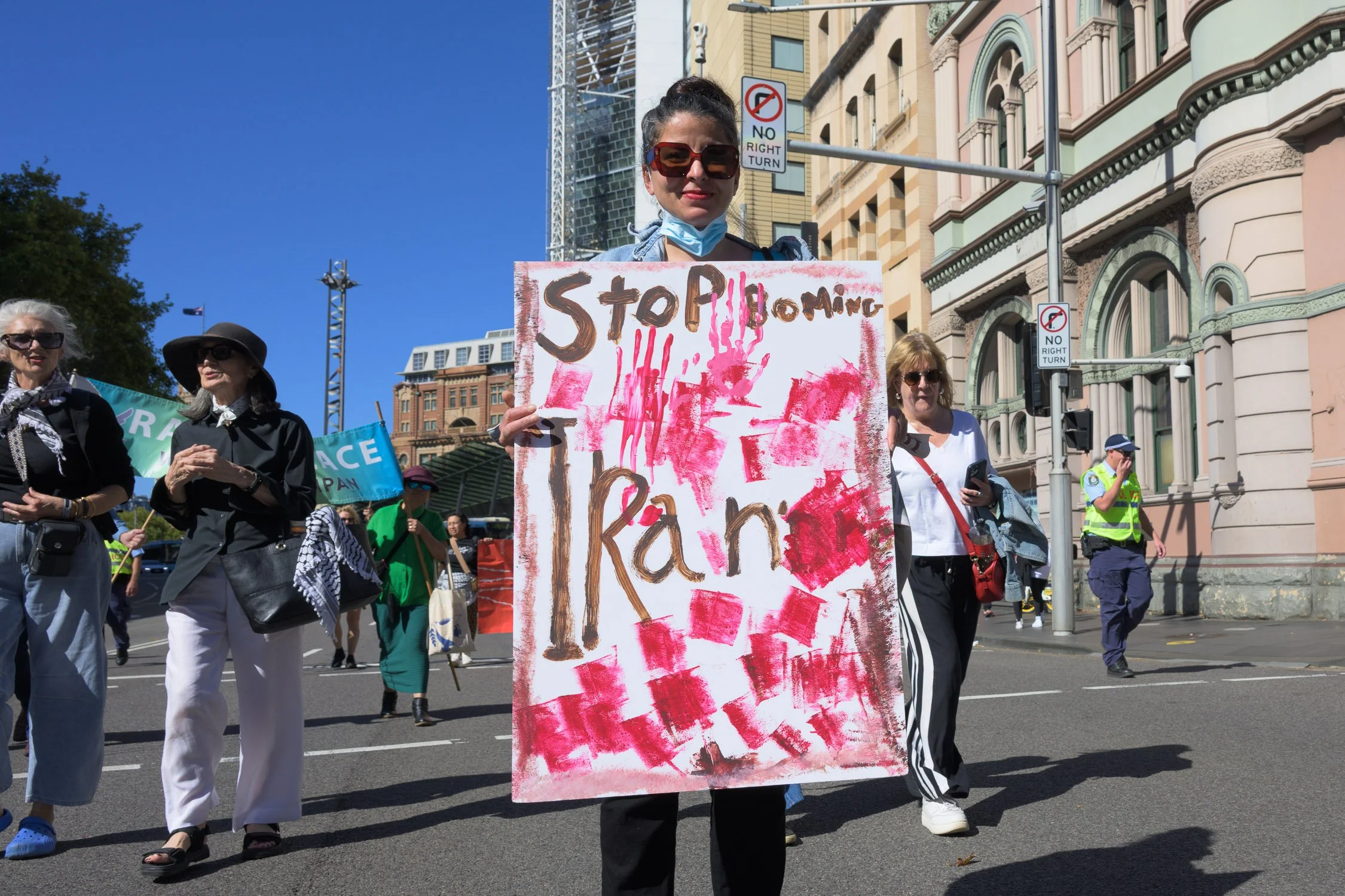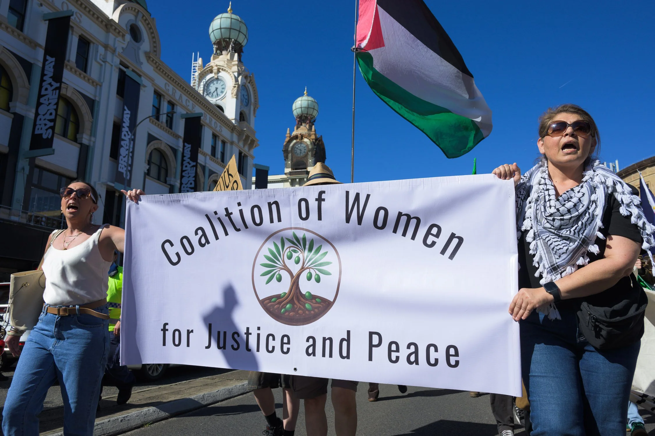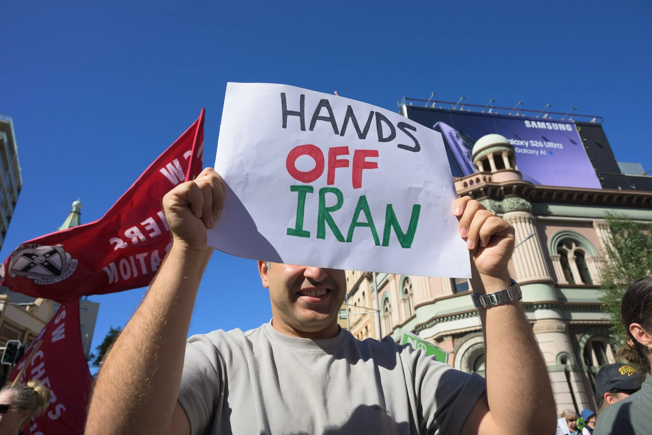 Photographs from today’s Palm Sunday rally on Gadigal Land, where a coalition of anti-war, peace and refugee activists came together to march from Belmore Park to Victoria Park. Speakers spoke out against militarism, Trumpian politics and the war unfolding in Iran, Lebanon, Palestine and elsewhere across West Asia.