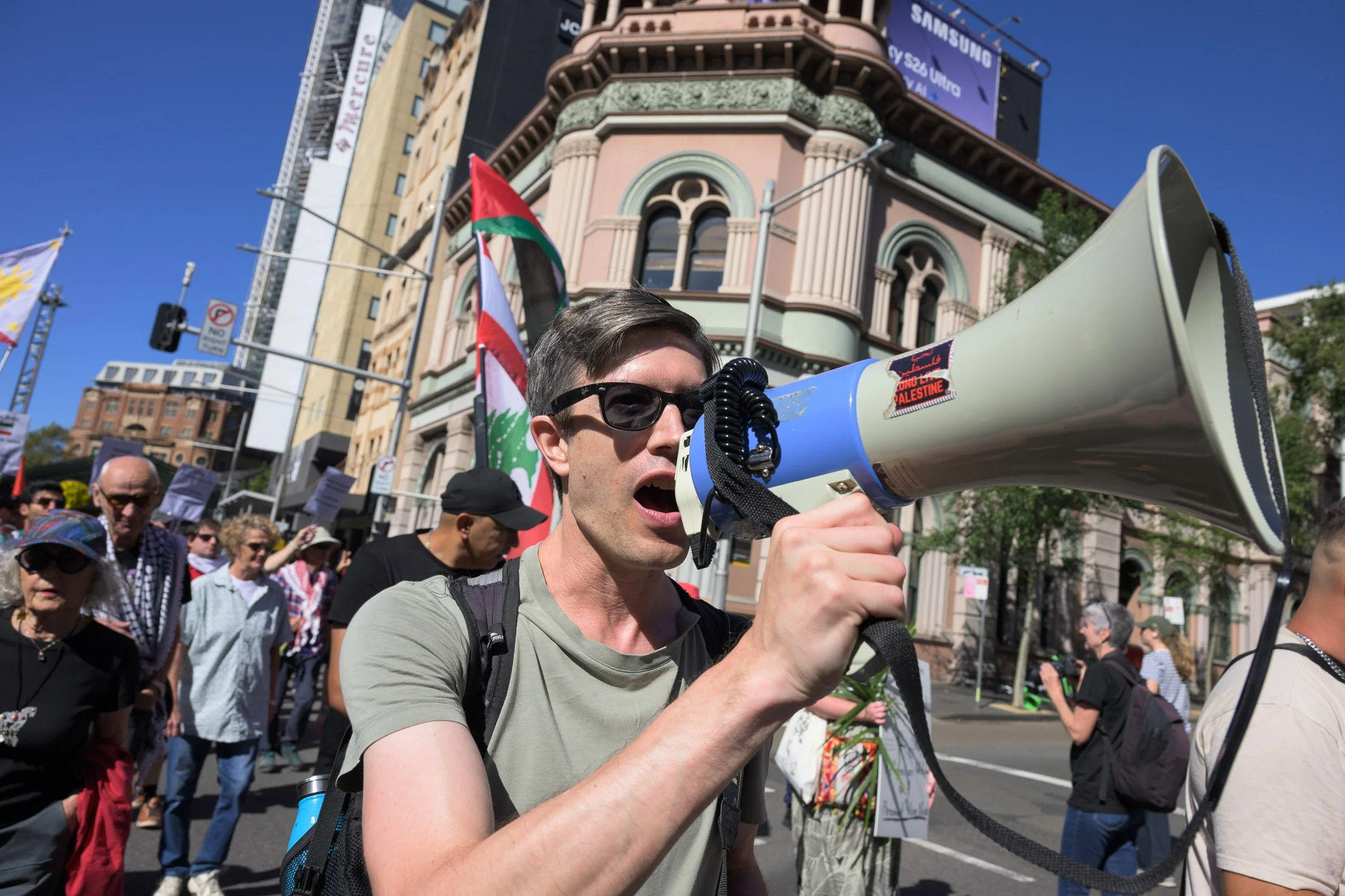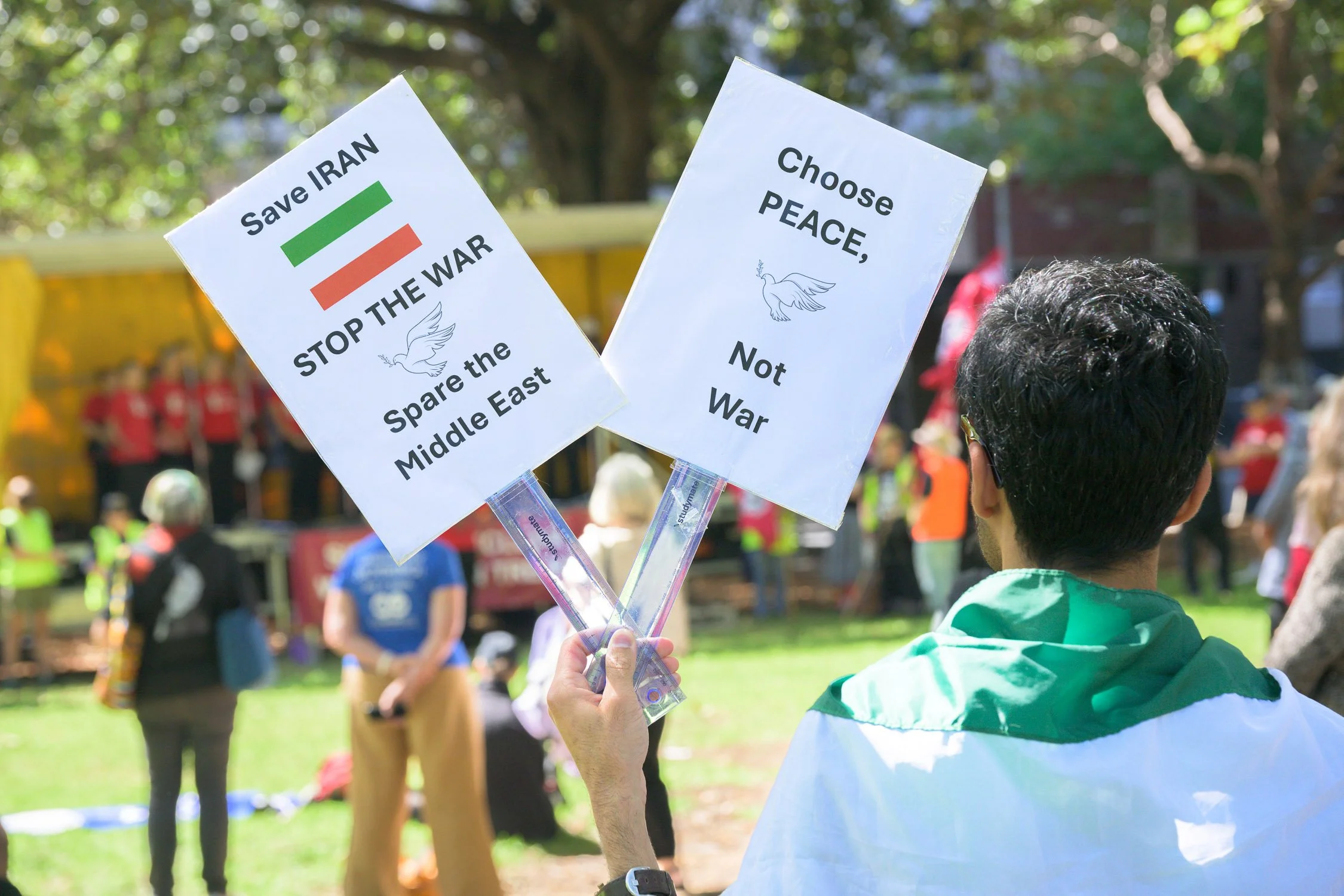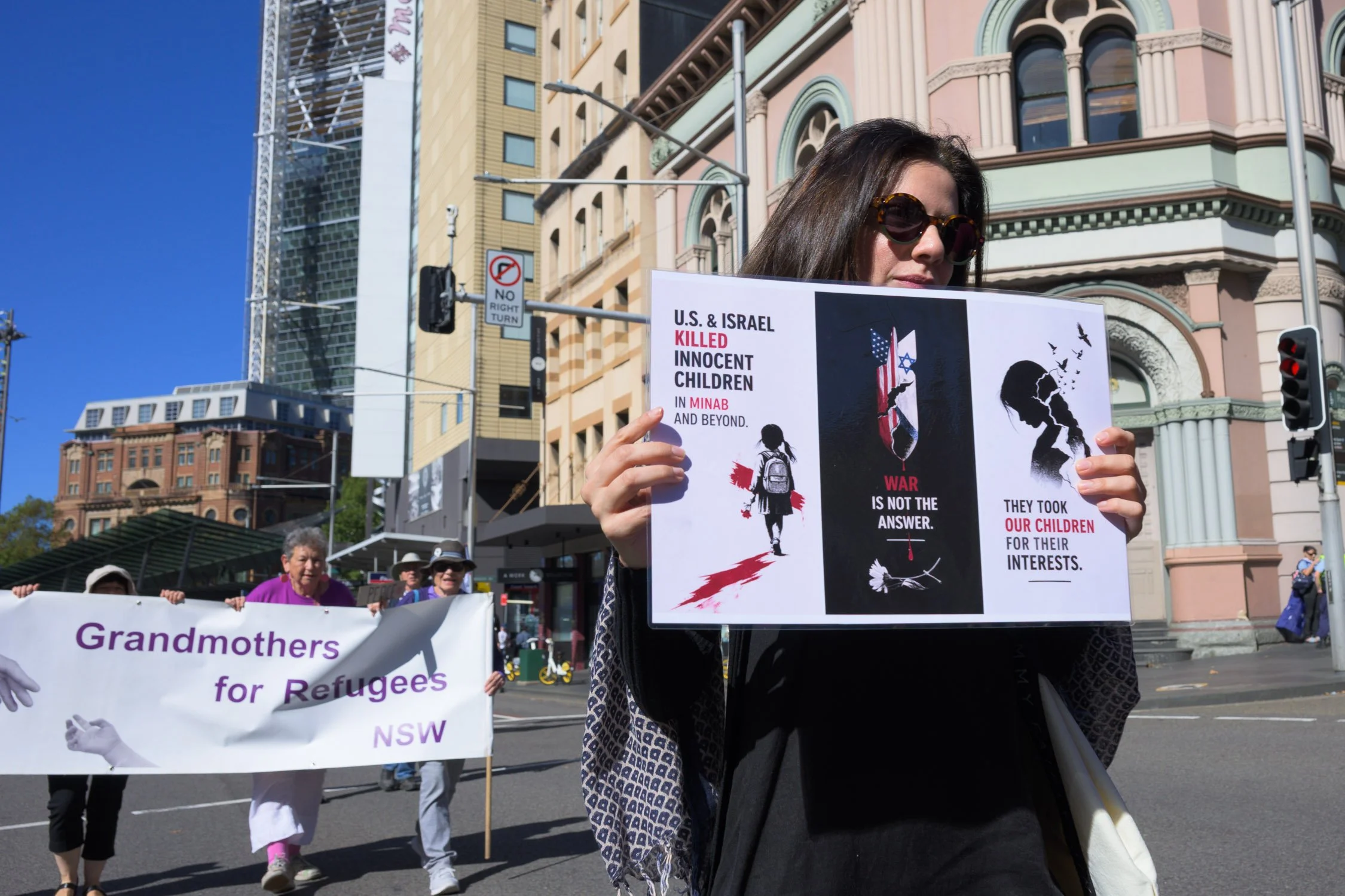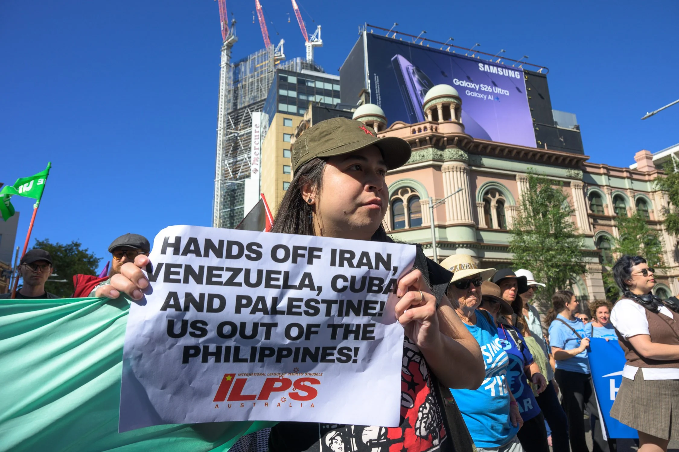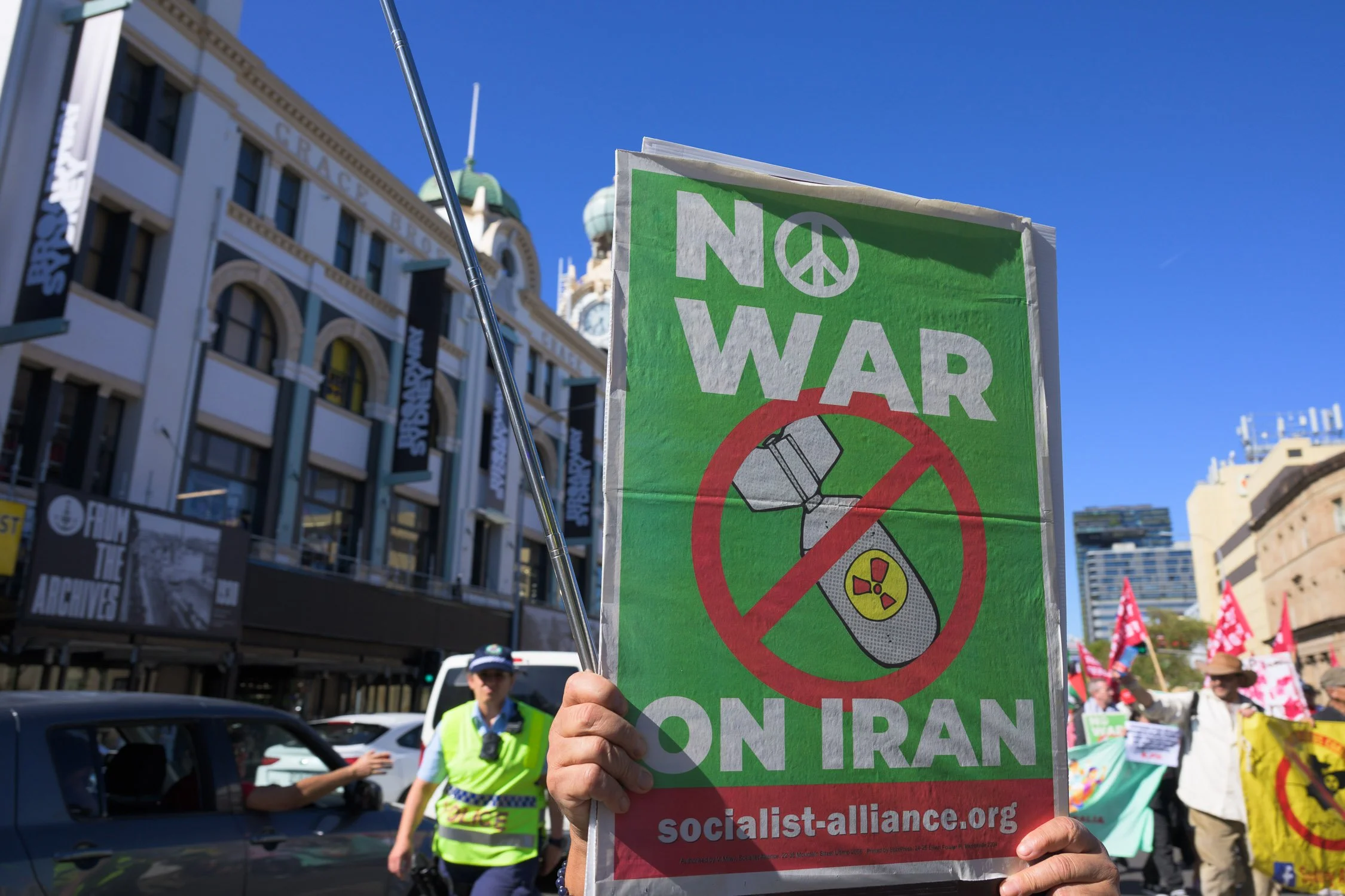 Photographs from today’s Palm Sunday rally on Gadigal Land, where a coalition of anti-war, peace and refugee activists came together to march from Belmore Park to Victoria Park. Speakers spoke out against militarism, Trumpian politics and the war unfolding in Iran, Lebanon, Palestine and elsewhere across West Asia.