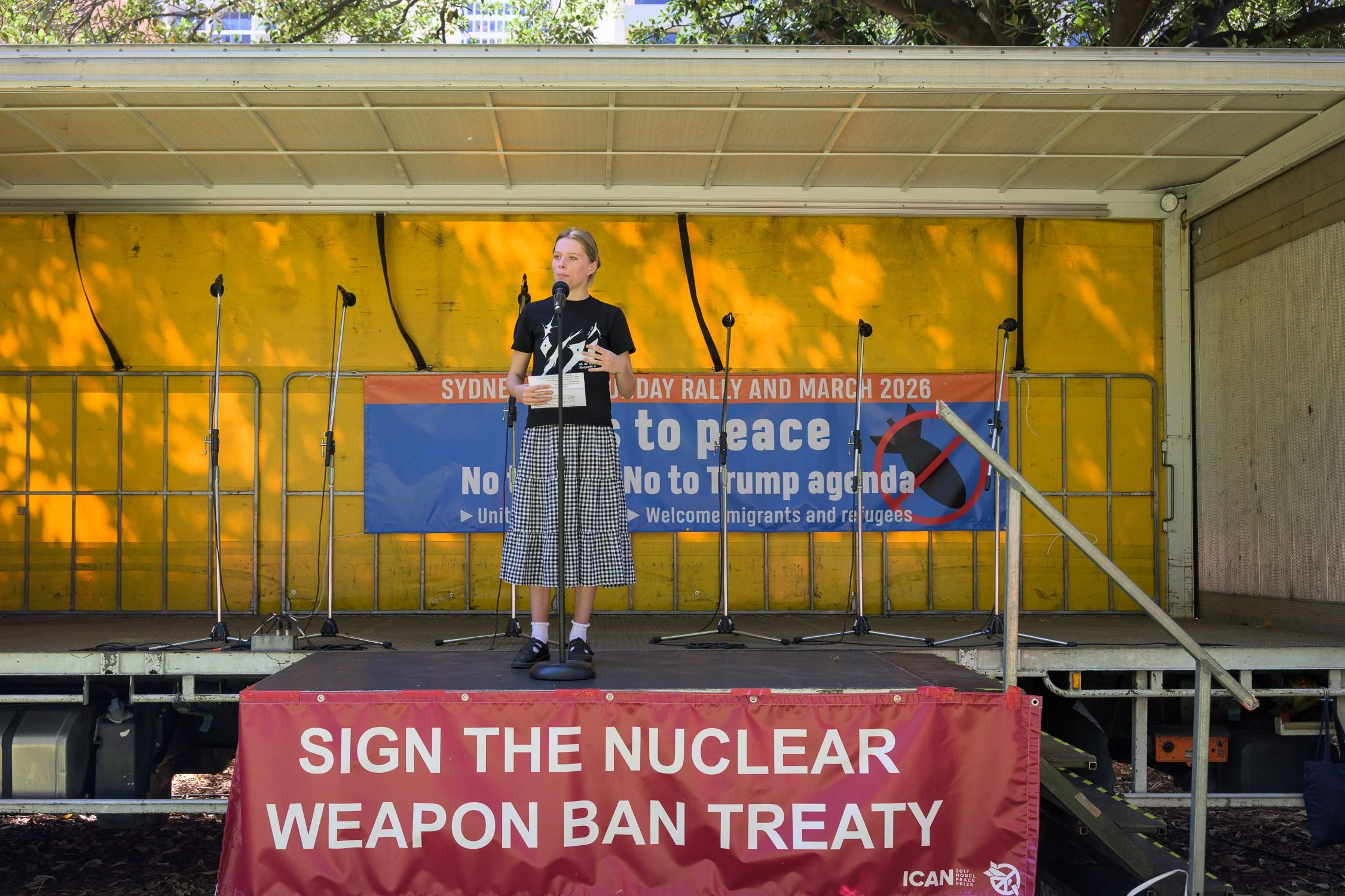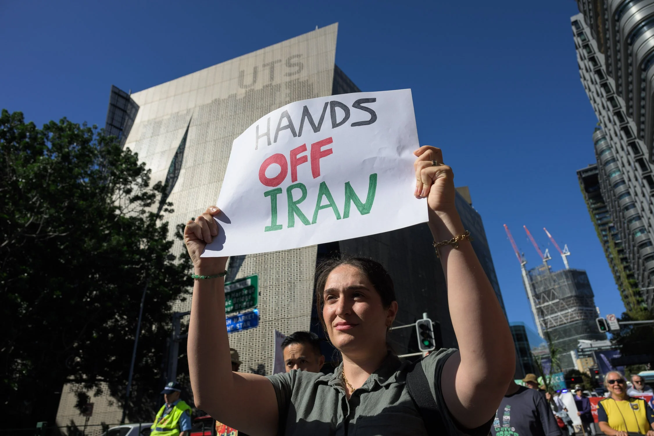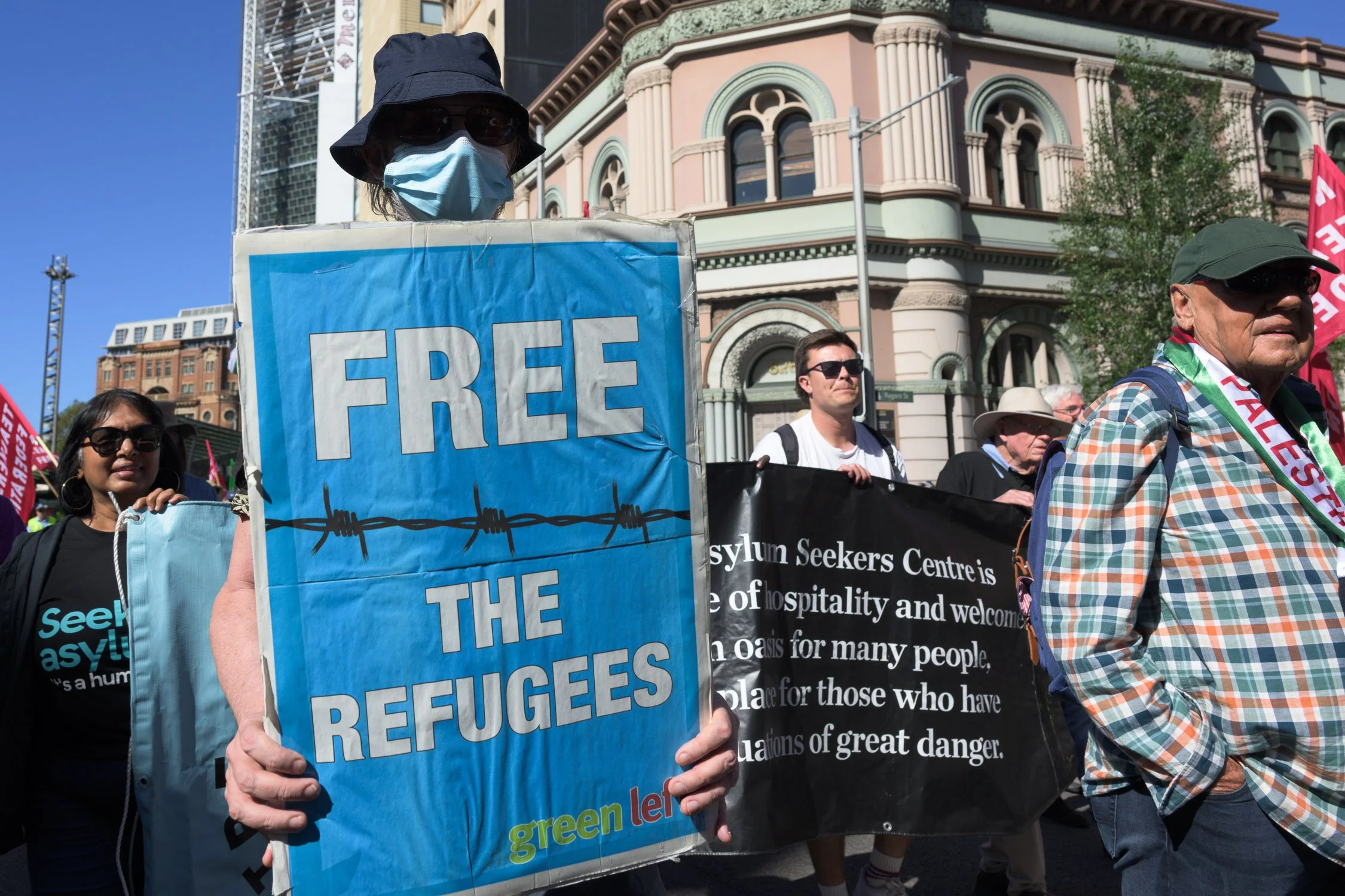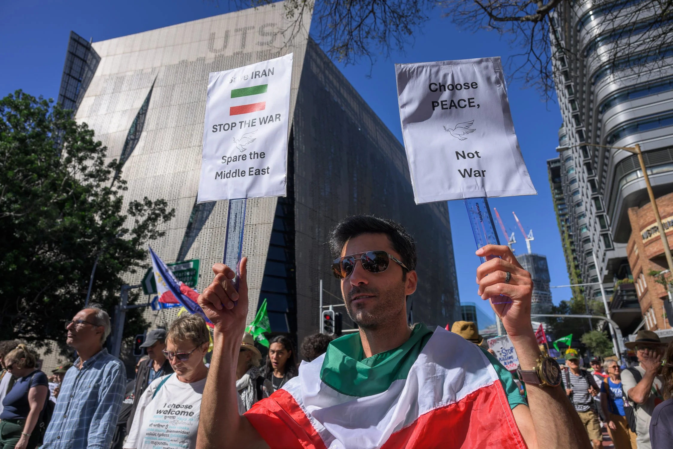 Photographs from today’s Palm Sunday rally on Gadigal Land, where a coalition of anti-war, peace and refugee activists came together to march from Belmore Park to Victoria Park. Speakers spoke out against militarism, Trumpian politics and the war unfolding in Iran, Lebanon, Palestine and elsewhere across West Asia.