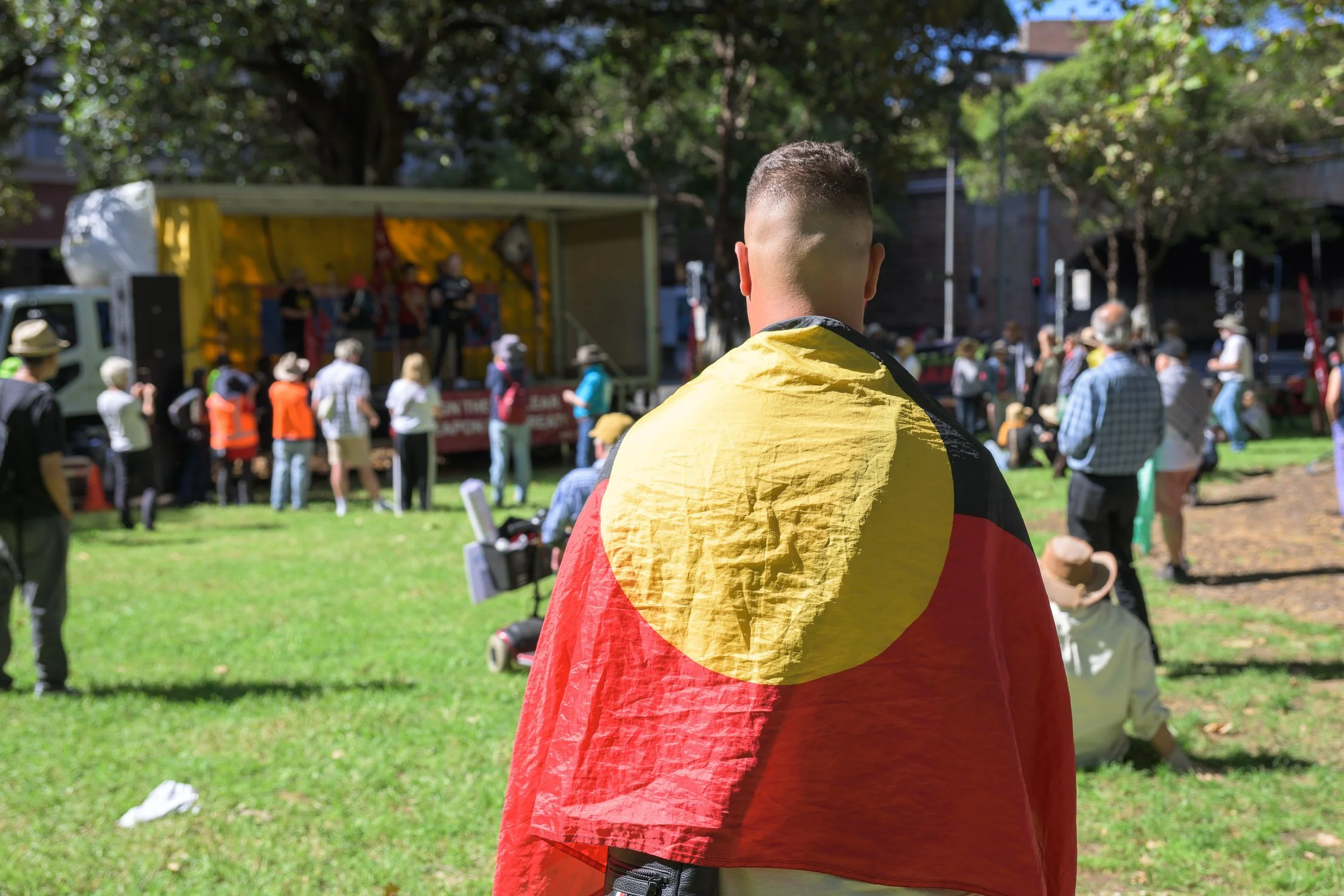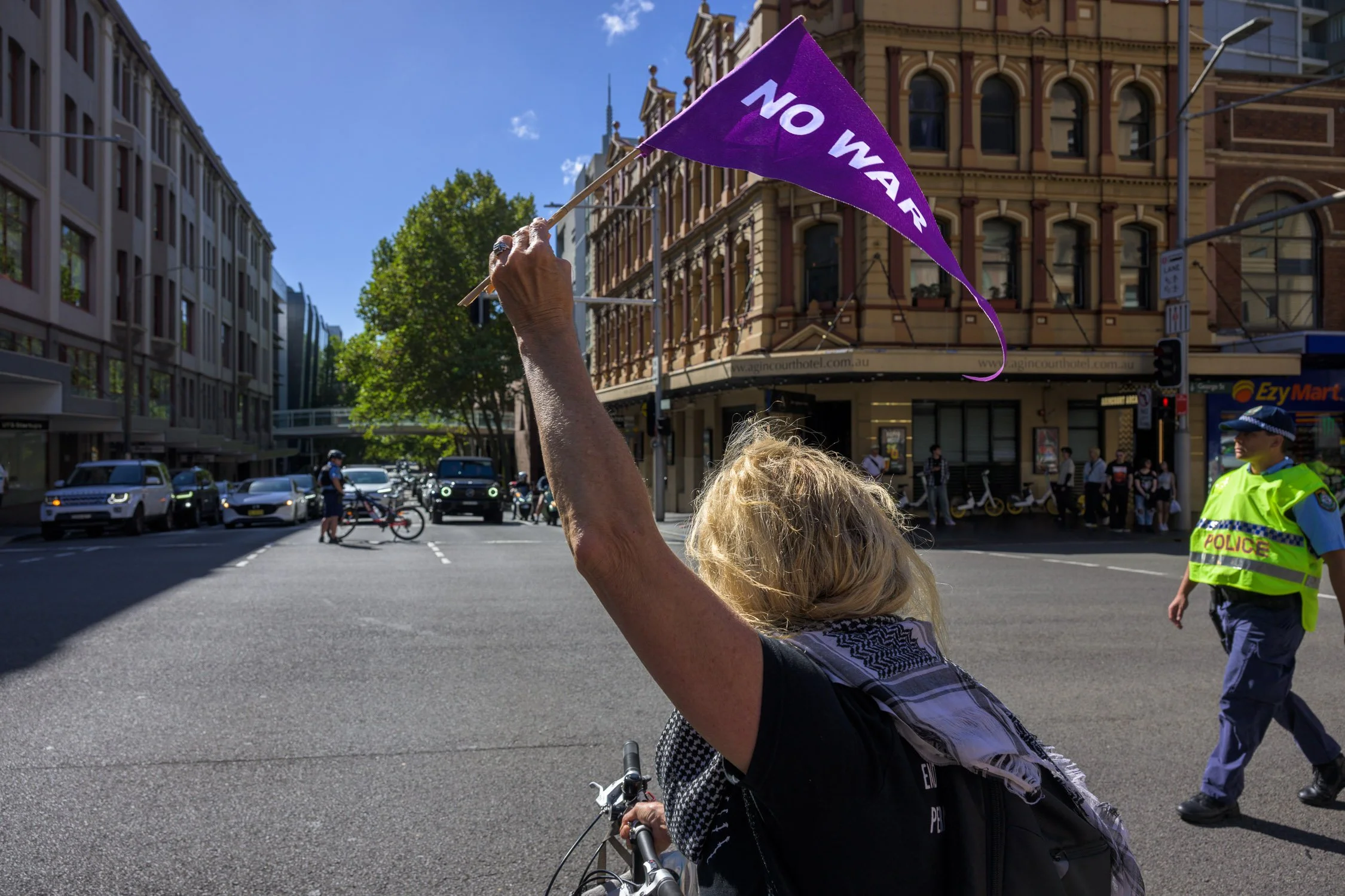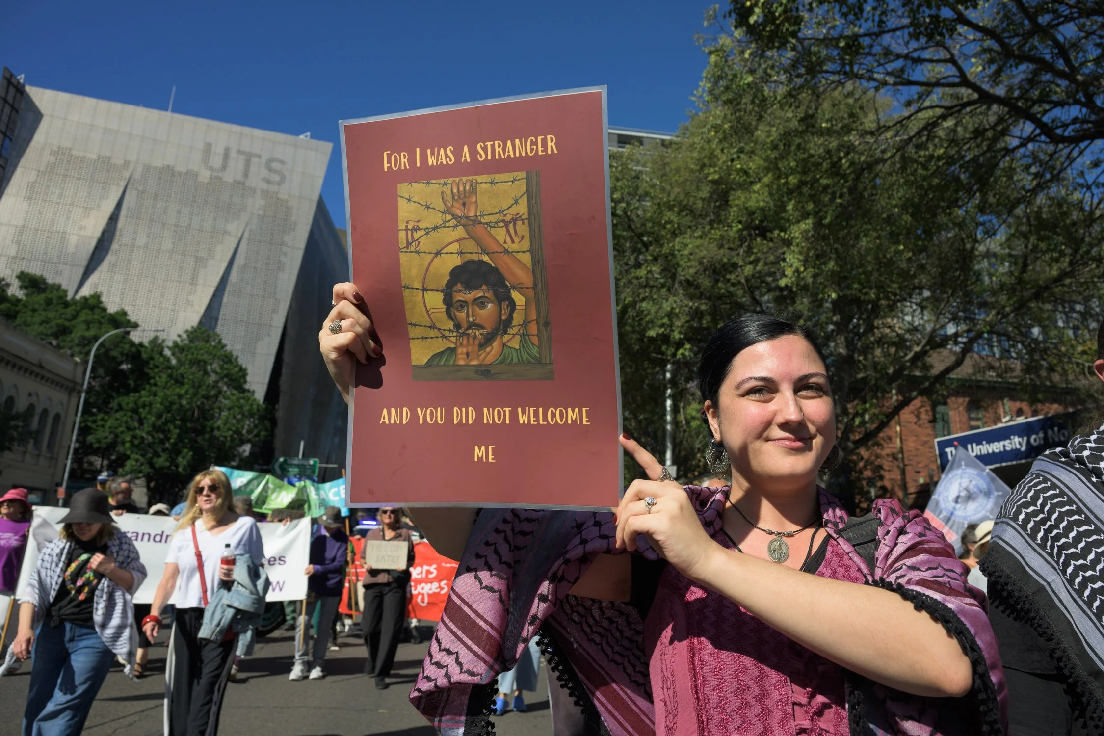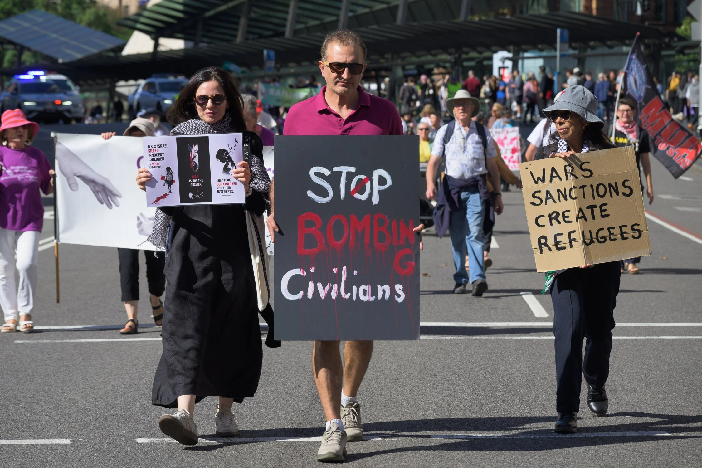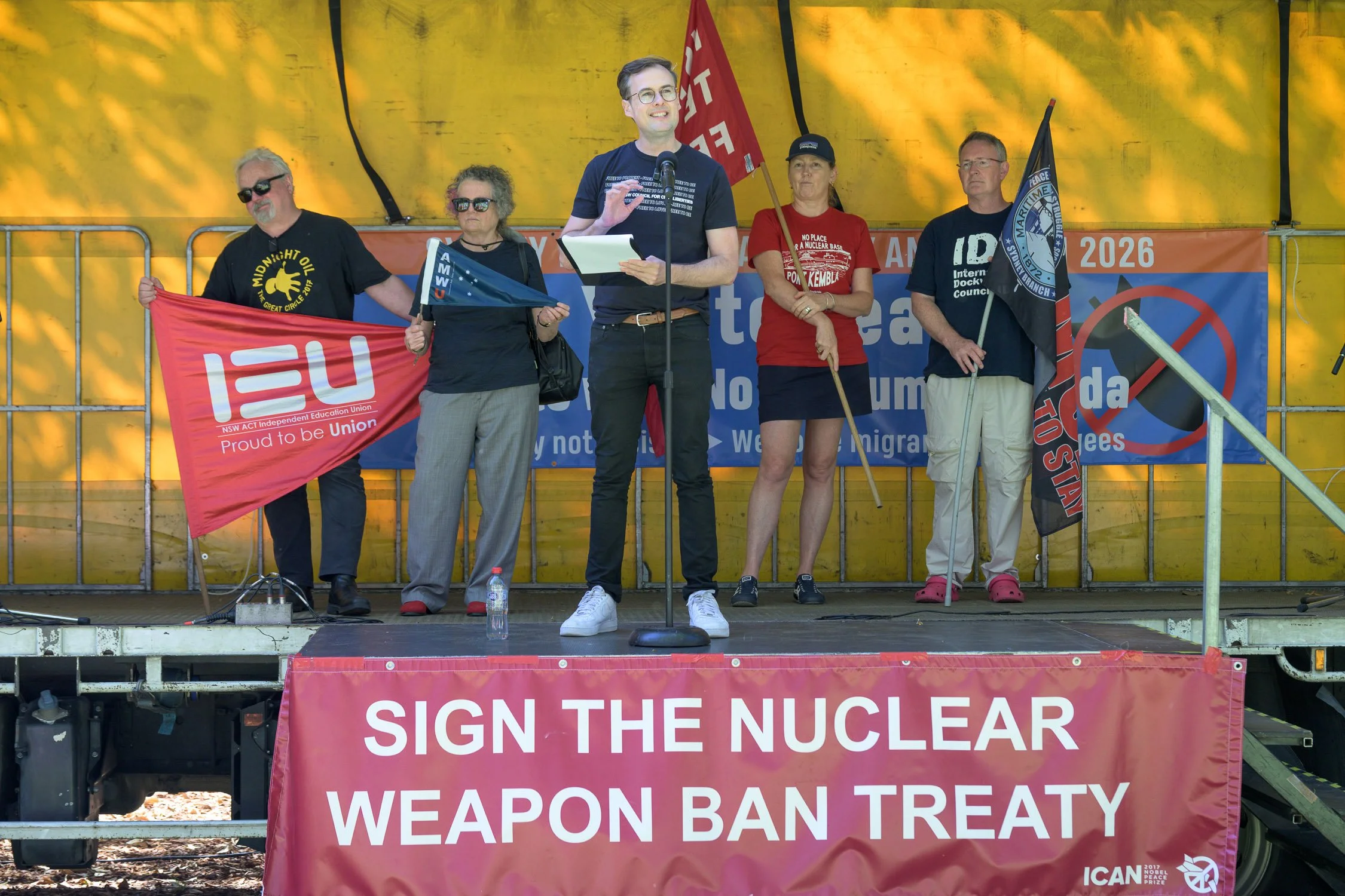 Photographs from today’s Palm Sunday rally on Gadigal Land, where a coalition of anti-war, peace and refugee activists came together to march from Belmore Park to Victoria Park. Speakers spoke out against militarism, Trumpian politics and the war unfolding in Iran, Lebanon, Palestine and elsewhere across West Asia.
